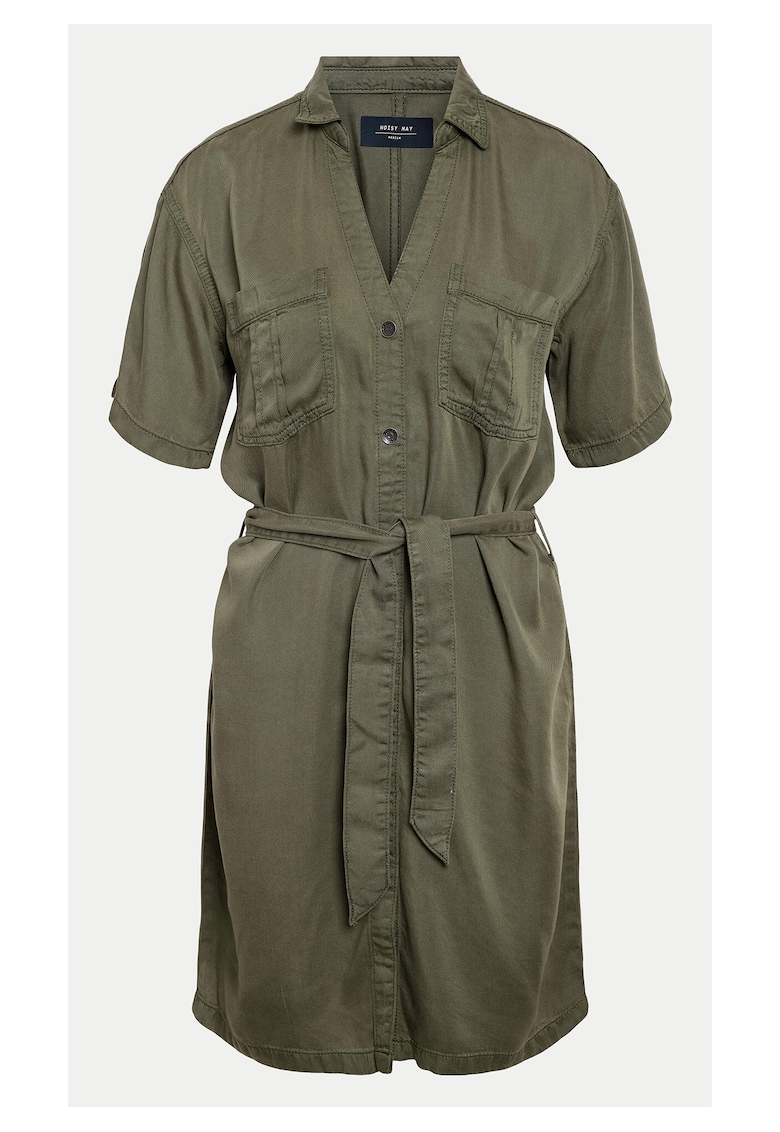 O alegere ideală pentru primăvară: cămașă stil rochie din lyocell verde. Confort și eleganță într-o singură piesă.