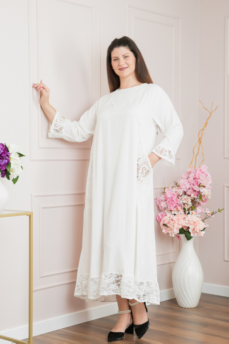Rochie boho albă din dantelă cu aplicații florale – Reducere 24 %