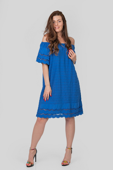 Rochie albastră din bumbac cu detaliu perforat A-line – Reducere 24.46 %