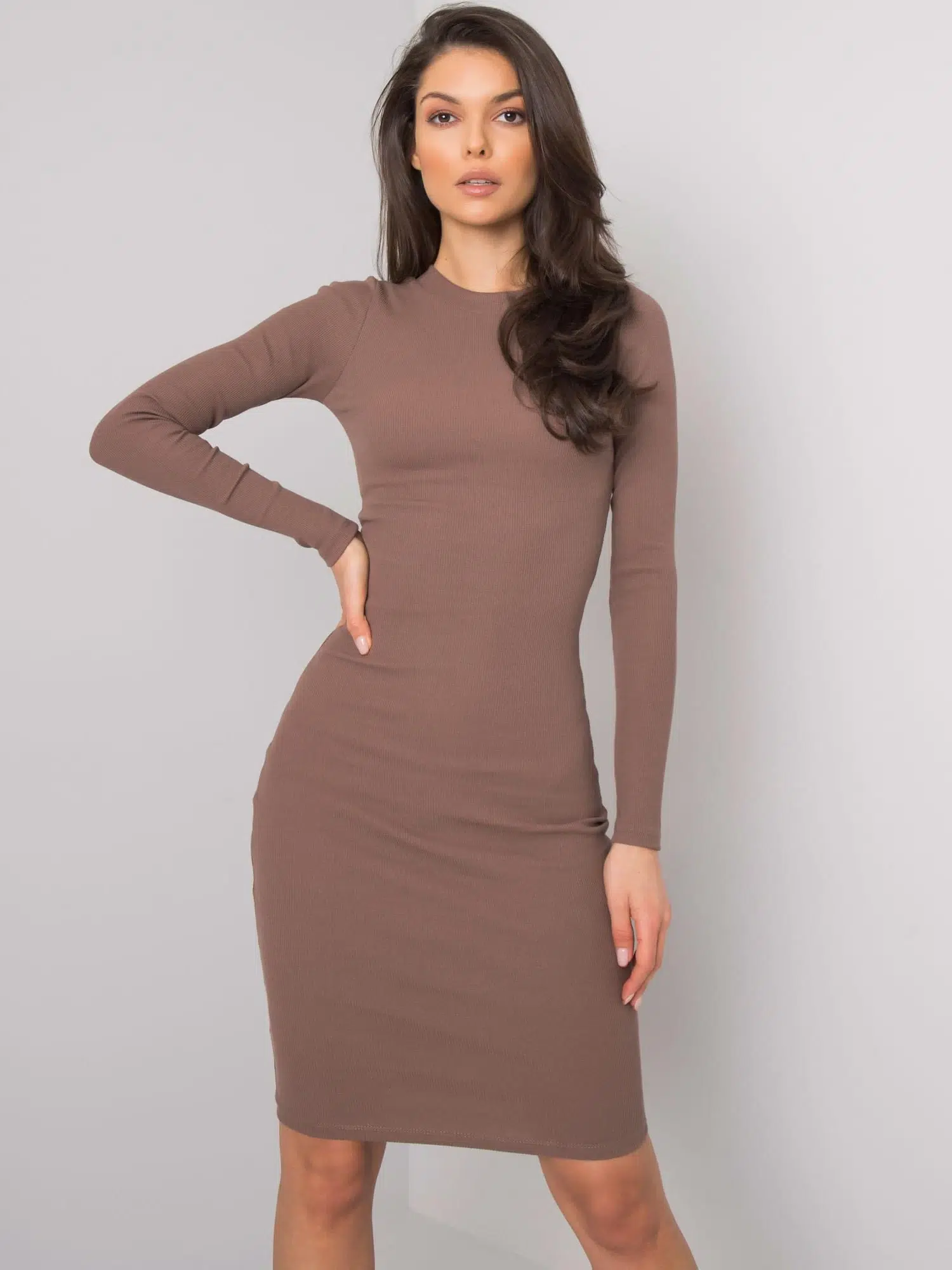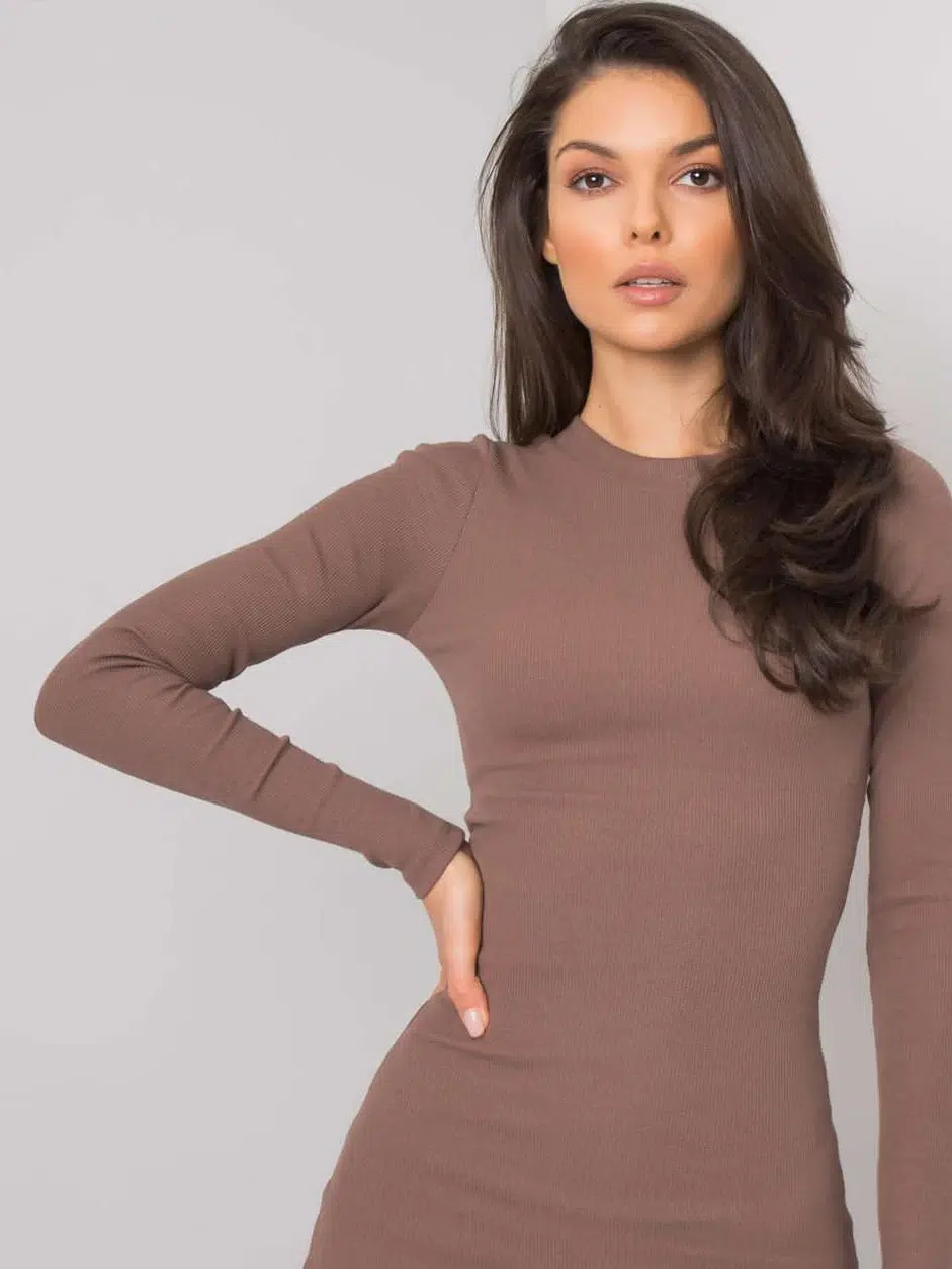 Poartă cu încredere rochia scurtă maro din material elastic. Perfectă pentru ținute elegante!