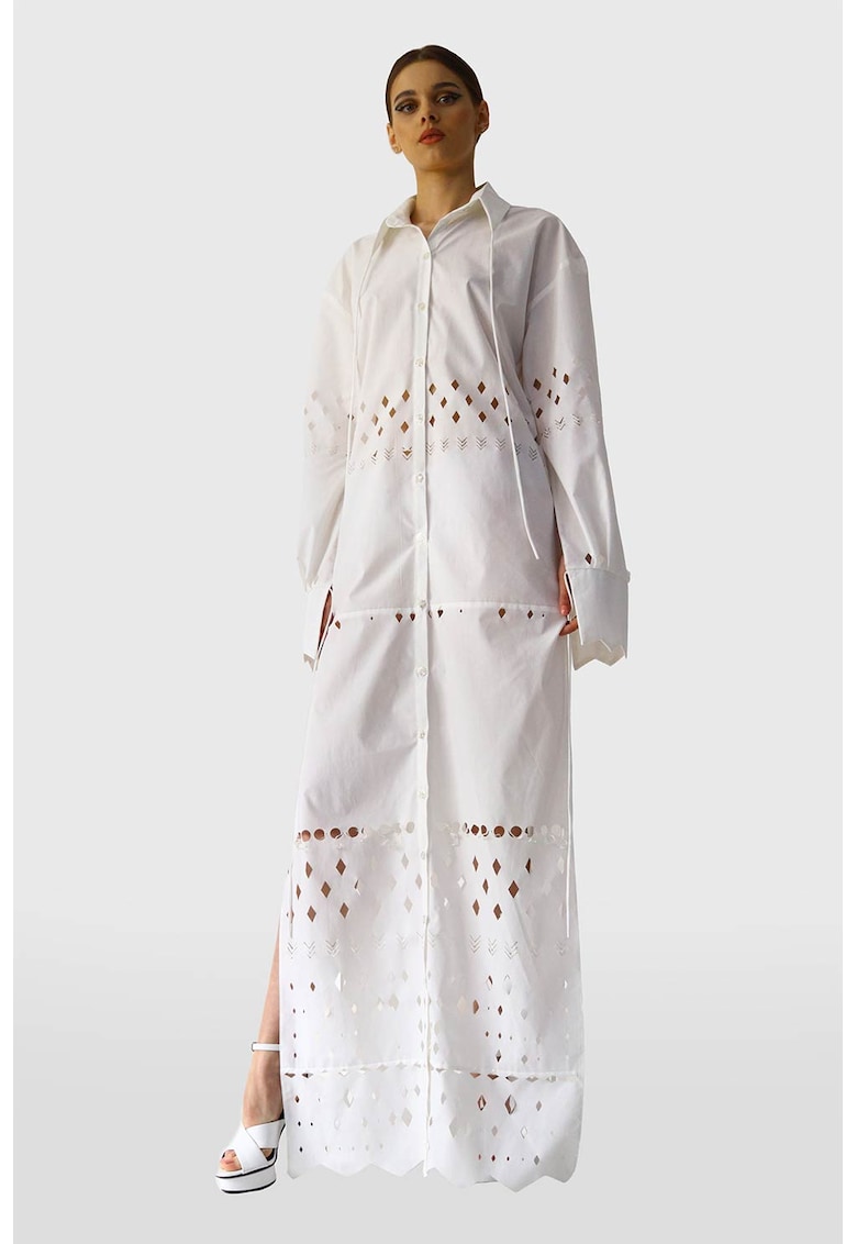 Rochie cămașă albă din bumbac cu perforații – Reducere 41.18 %