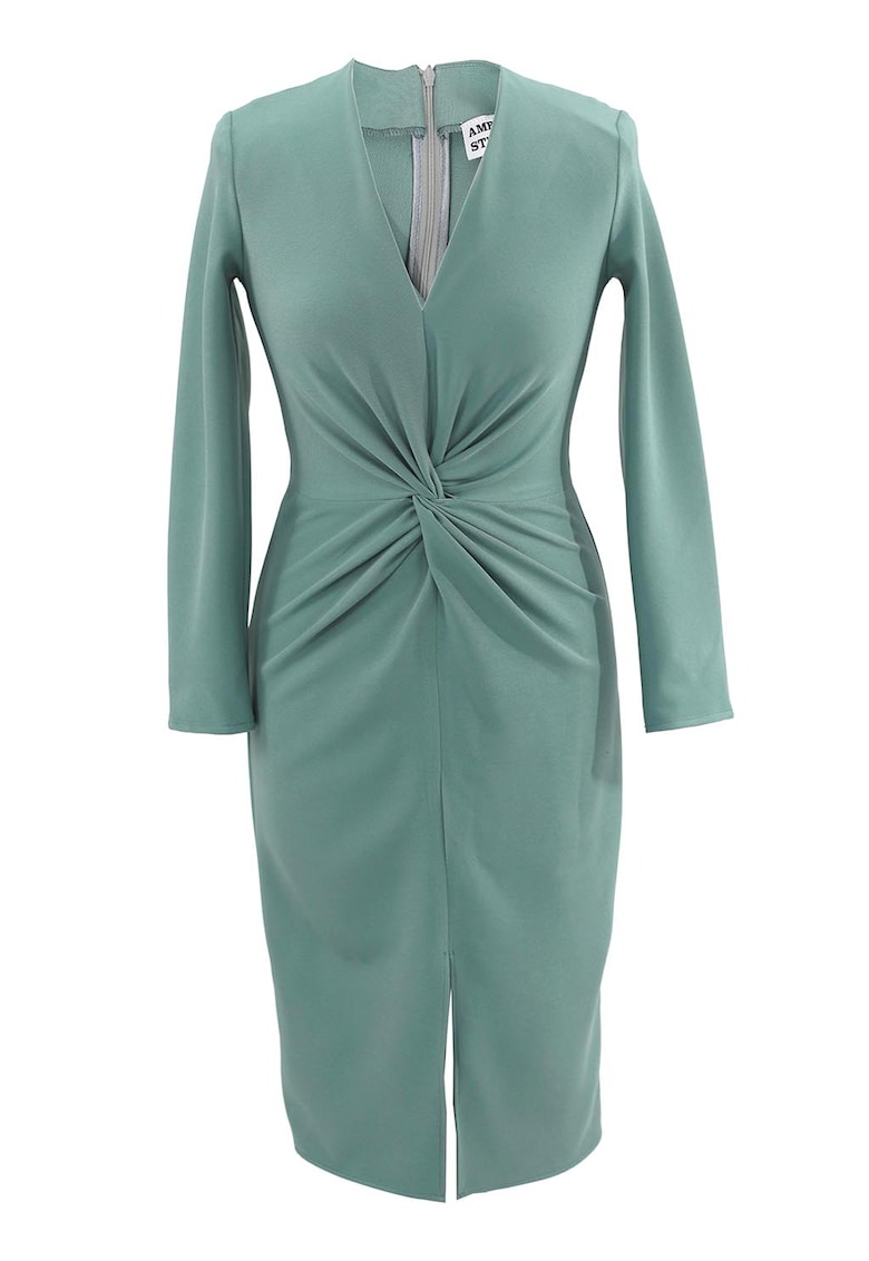 Rochie elegantă verde din sintetic cu decolteu în V și detaliu răsucit – Reducere 36.43 %