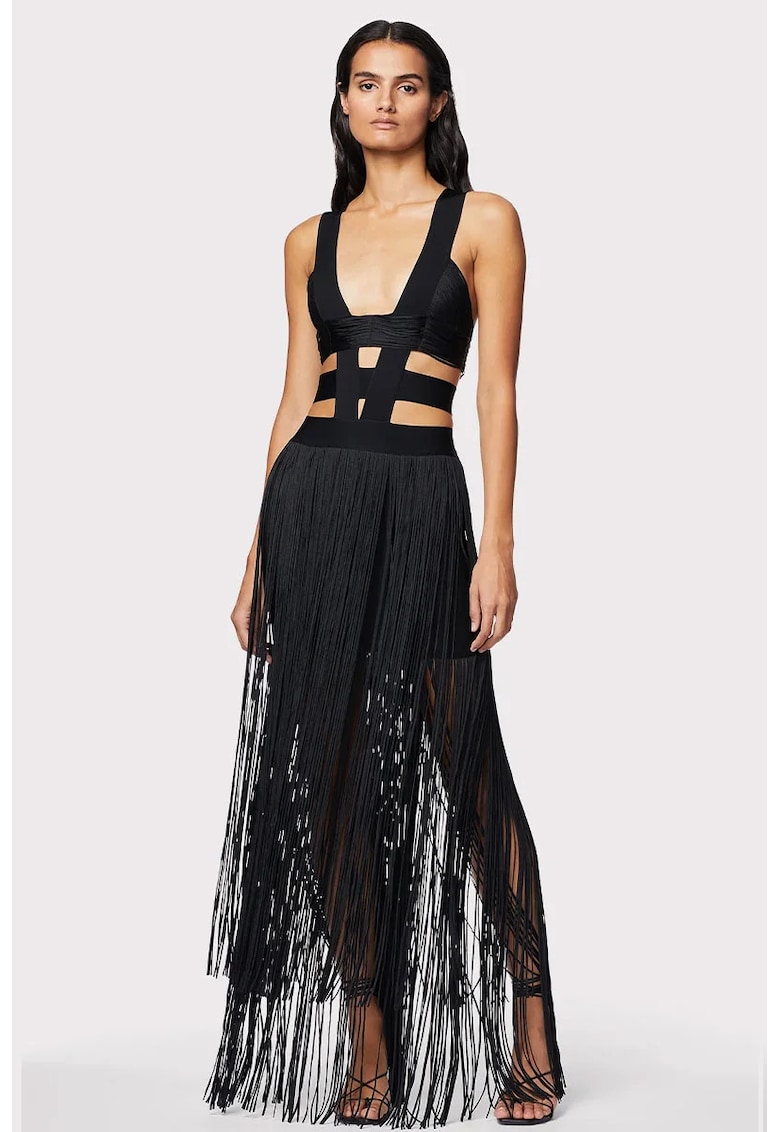 Rochie cu franjuri si decolteu adanc in V – Negru
