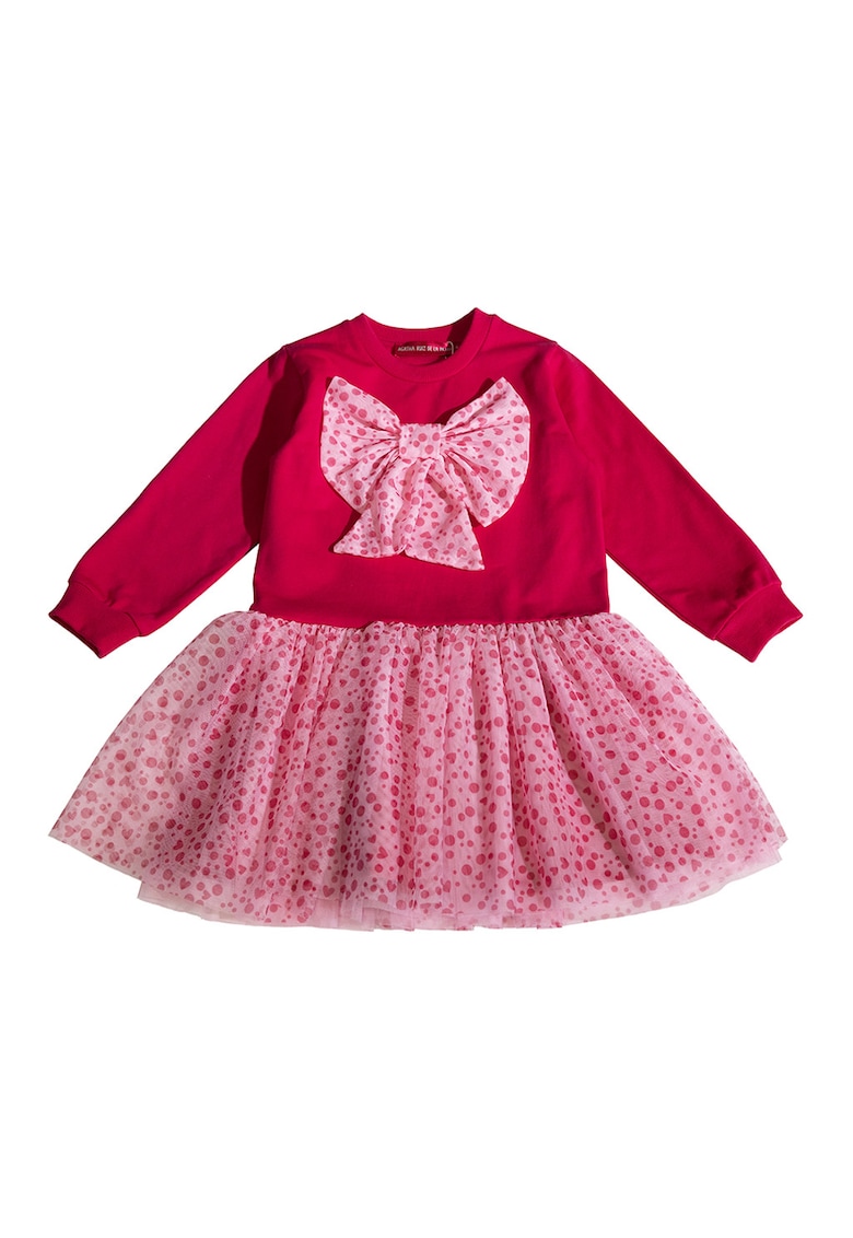 Rochia dispune de mâneci lungi și un decolteu la baza gâtului, oferindu-ți un look sofisticat. Detaliul funda adaugă o notă de feminitate și rafinament, transformând-o într-o alegere perfectă pentru evenimentele de zi sau seară. Cu un imprimeu delicat cu inimioare, această rochie multicolor va atrage toate privirile și va adăuga o notă de prospețime garderobei tale.