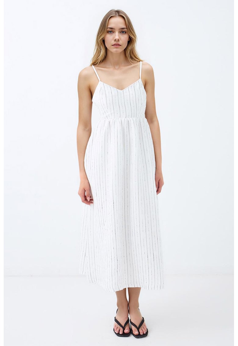 Rochie cu model in dungi si decolteu in V – Negru/Alb murdar
