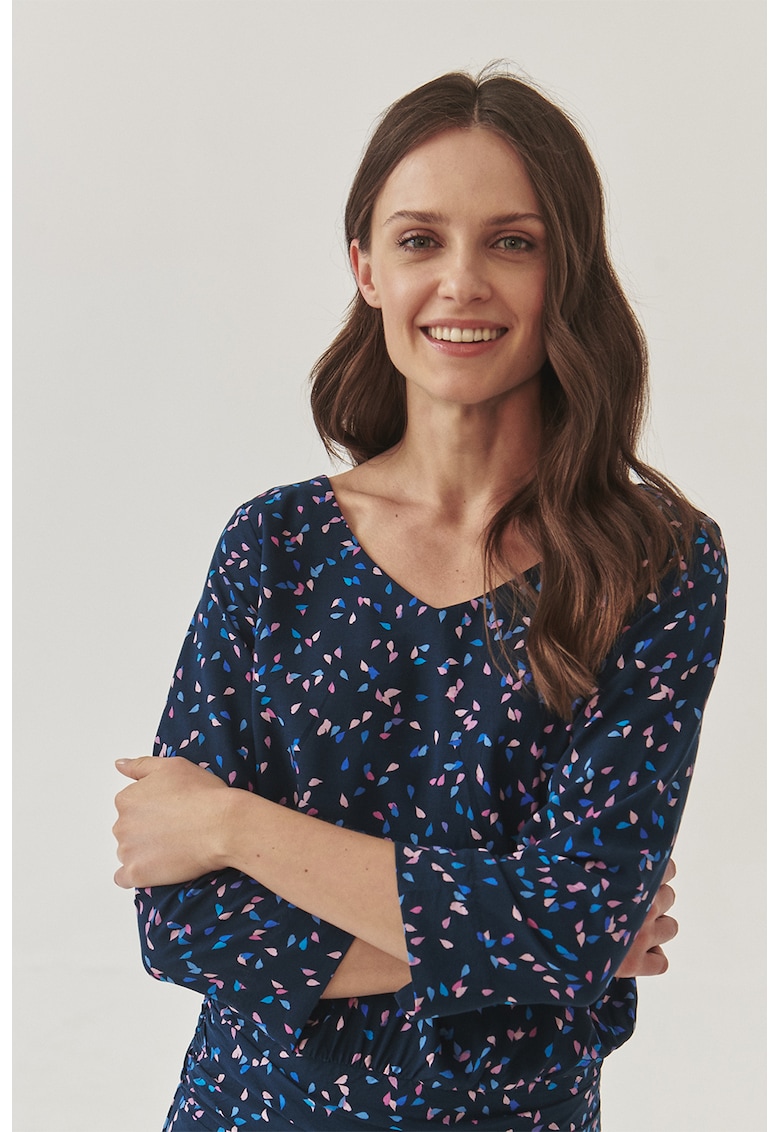 Rochie cu model si decolteu in V Rozomka – Roz deschis/Bleumarin