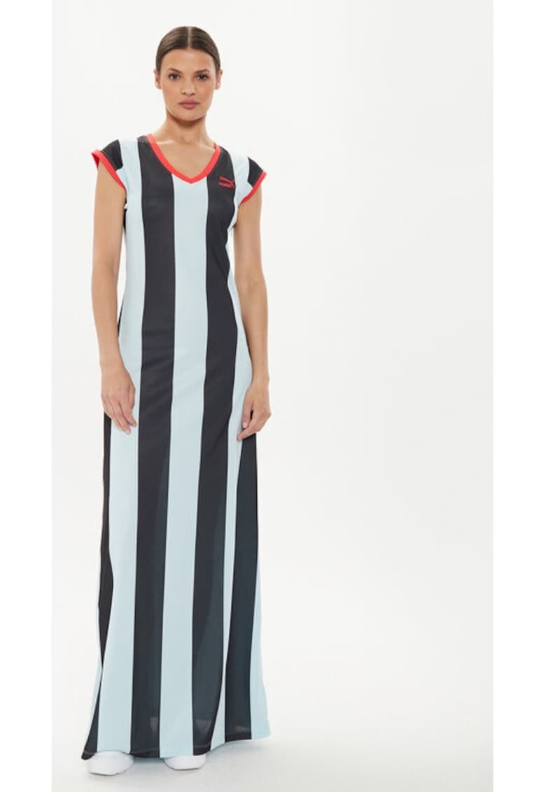 Poartă cu încredere rochia multicoloră din poliester. Perfectă pentru ocazii speciale sau zile de vară!