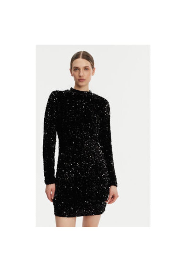 Rochie elegantă neagră din poliester cu croi scurt – Reducere 47.33 %