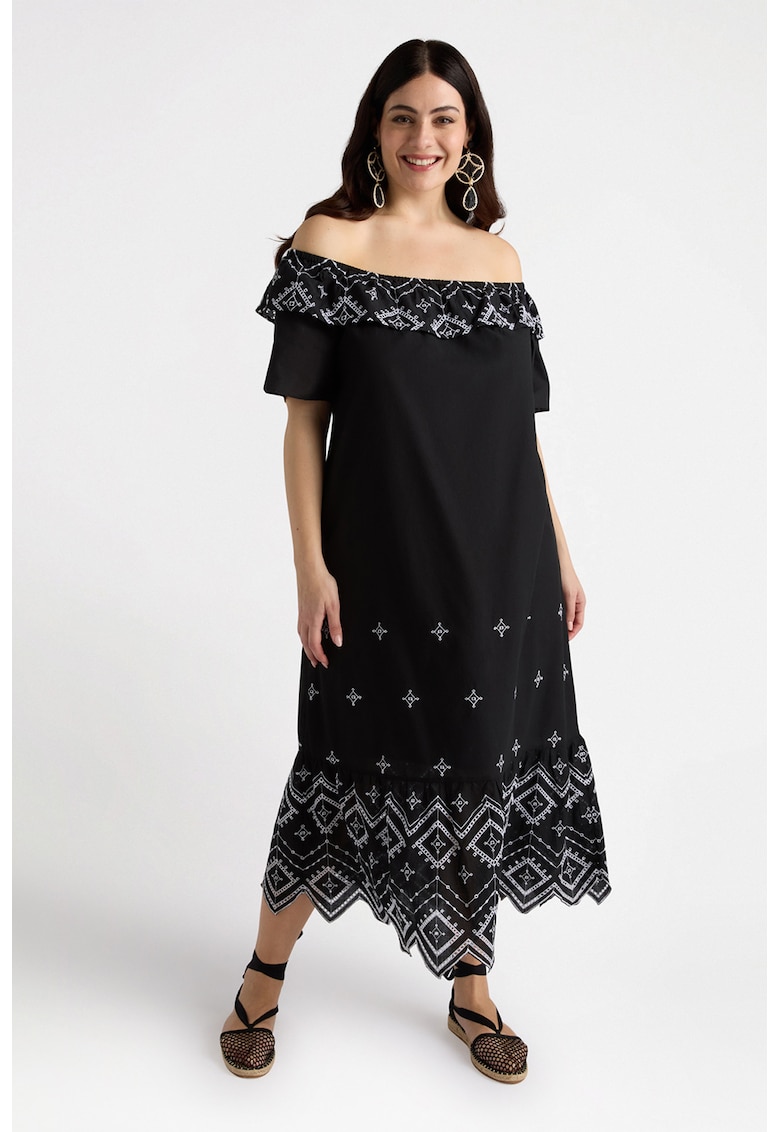 Rochie de bumbac cu decolteu pe umeri – Negru/Alb optic
