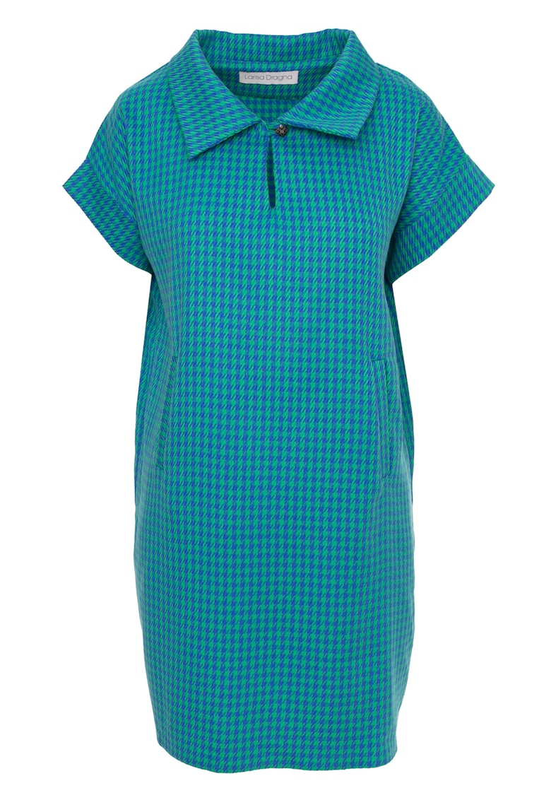 Rochie casual turcoaz din amestec de bumbac cu imprimeu în carouri – Reducere 40 %
