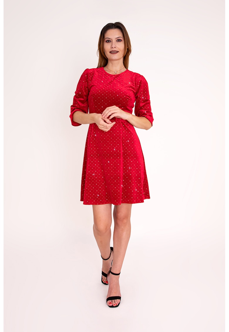 Rochie evazata cu aplicatii din strasuri Mirelle – Rosu
