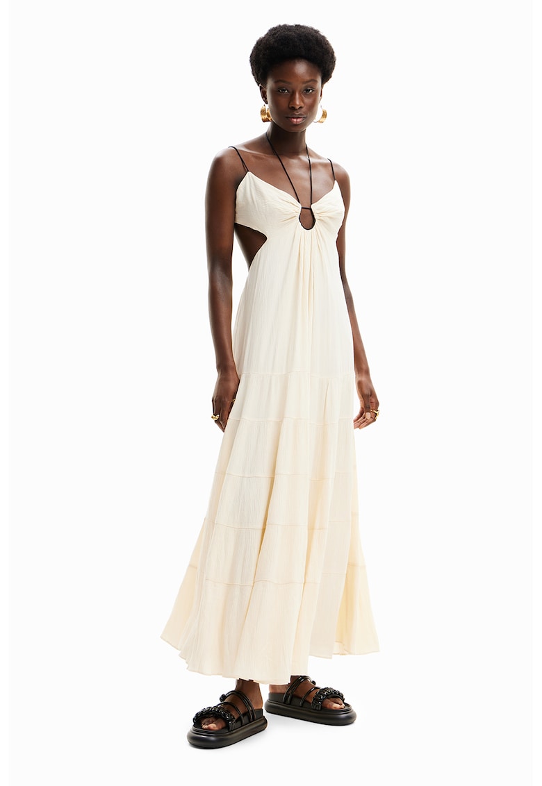 Rochie evazata cu decolteu pe partea din spate – Crem