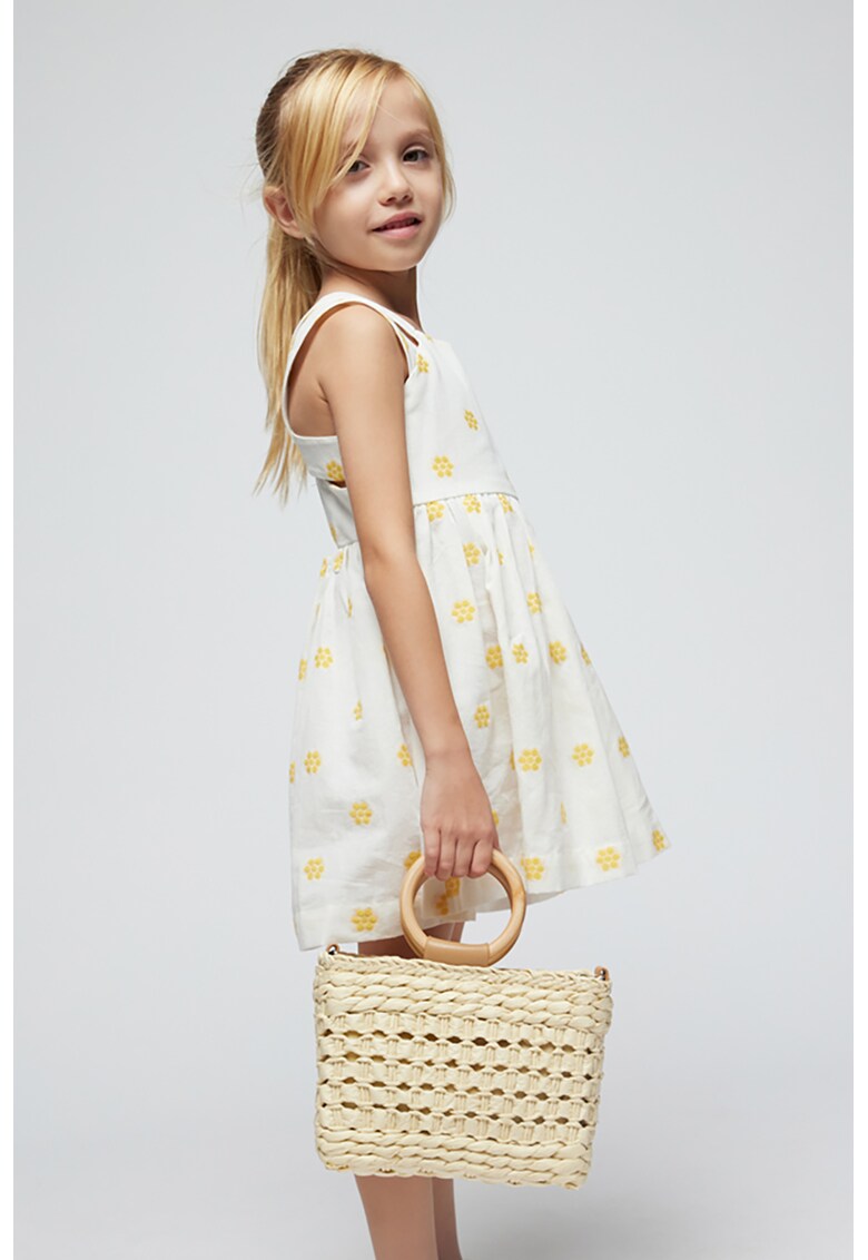Îndrăznește să strălucești în galben! Rochia evazată din bumbac cu imprimeu floral este perfectă pentru zilele călduroase.