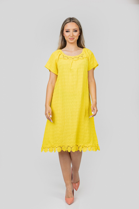 Rochie galbenă din bumbac cu aplicații florale – Reducere 24.46 %