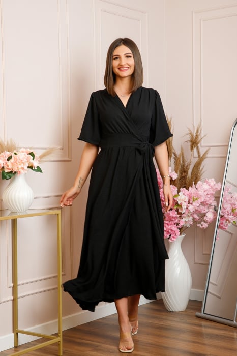 Rochie Lara petrecuta cu maneci scurte – Negru