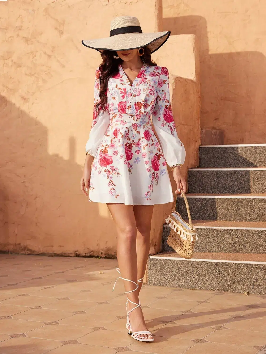 Îndrăgostește-te de eleganța cu imprimeu floral. Perfectă pentru zilele călduroase.