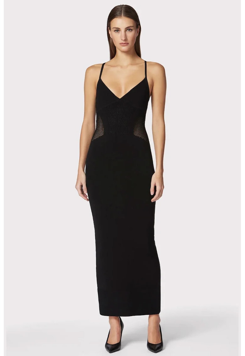 Rochie lunga cu bretele subtiri – cu decolteu in V si decupaj adanc pe spate – Negru