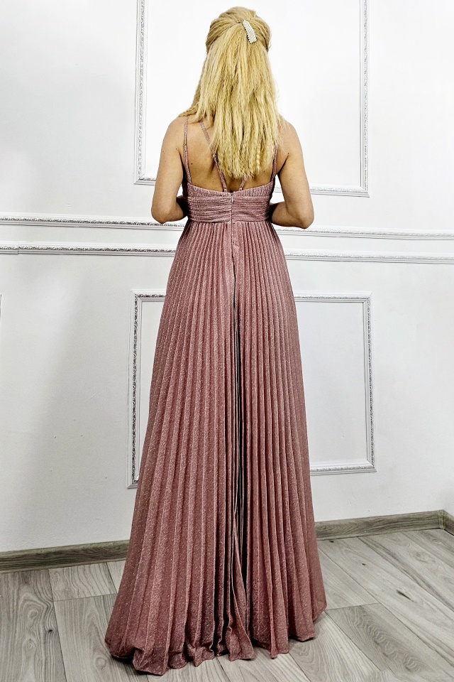 Rochie lunga de seara AZARIA, cu falduri si croiala empire, Roz