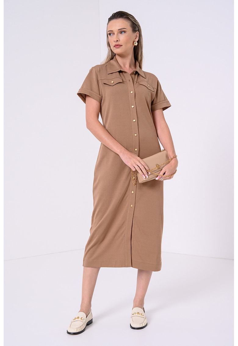 Rochie lungă dreaptă maro din bumbac cu nasturi – Reducere 44.96 %