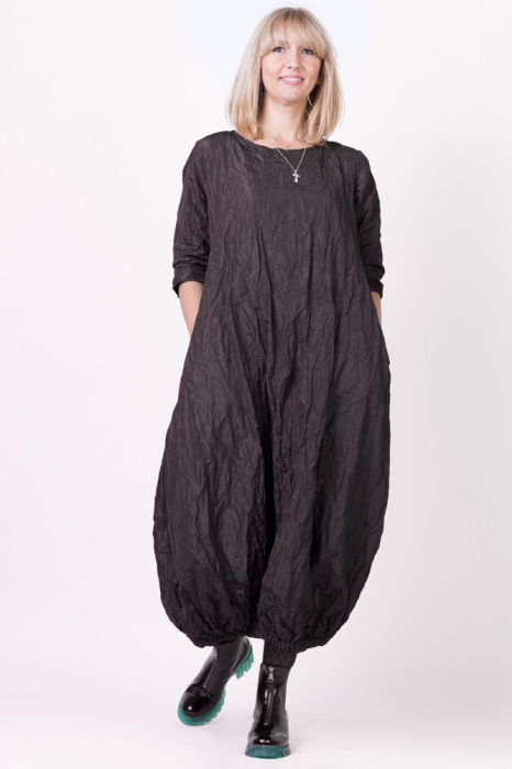 Mânecele 3/4 adaugă un plus de sofisticare, fiind perfecte pentru zilele mai răcoroase de primăvară sau toamnă. Detaliile ingenioase, cum ar fi buzunarele laterale ascunse, îmbină stilul cu funcționalitatea, permițându-ți să te bucuri de libertate de mișcare. La baza, elasticul care dă aspectul de gogosar completează designul, adăugând un aer jucăuș întregii ținute.