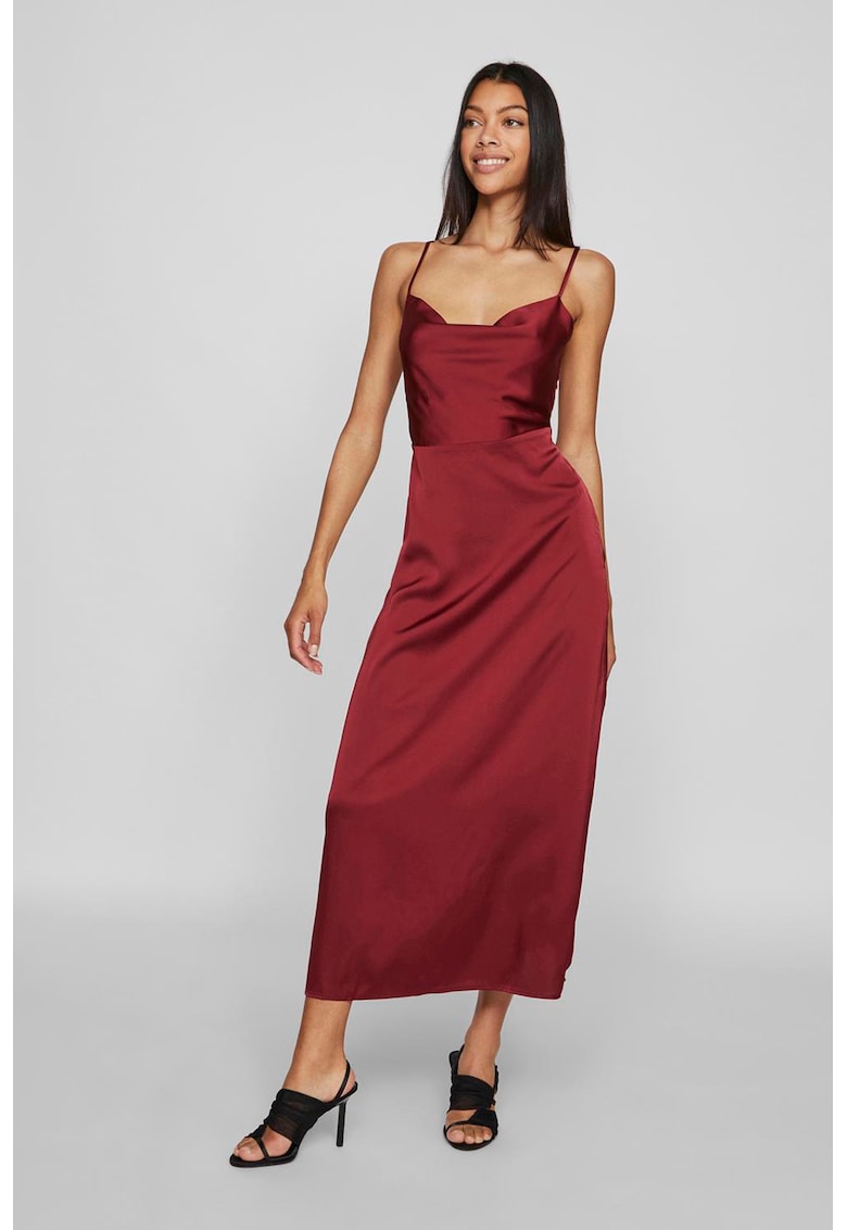 Rochie elegantă roșie închisă din material sintetic cu aspect satinat – Reducere 44.06 %