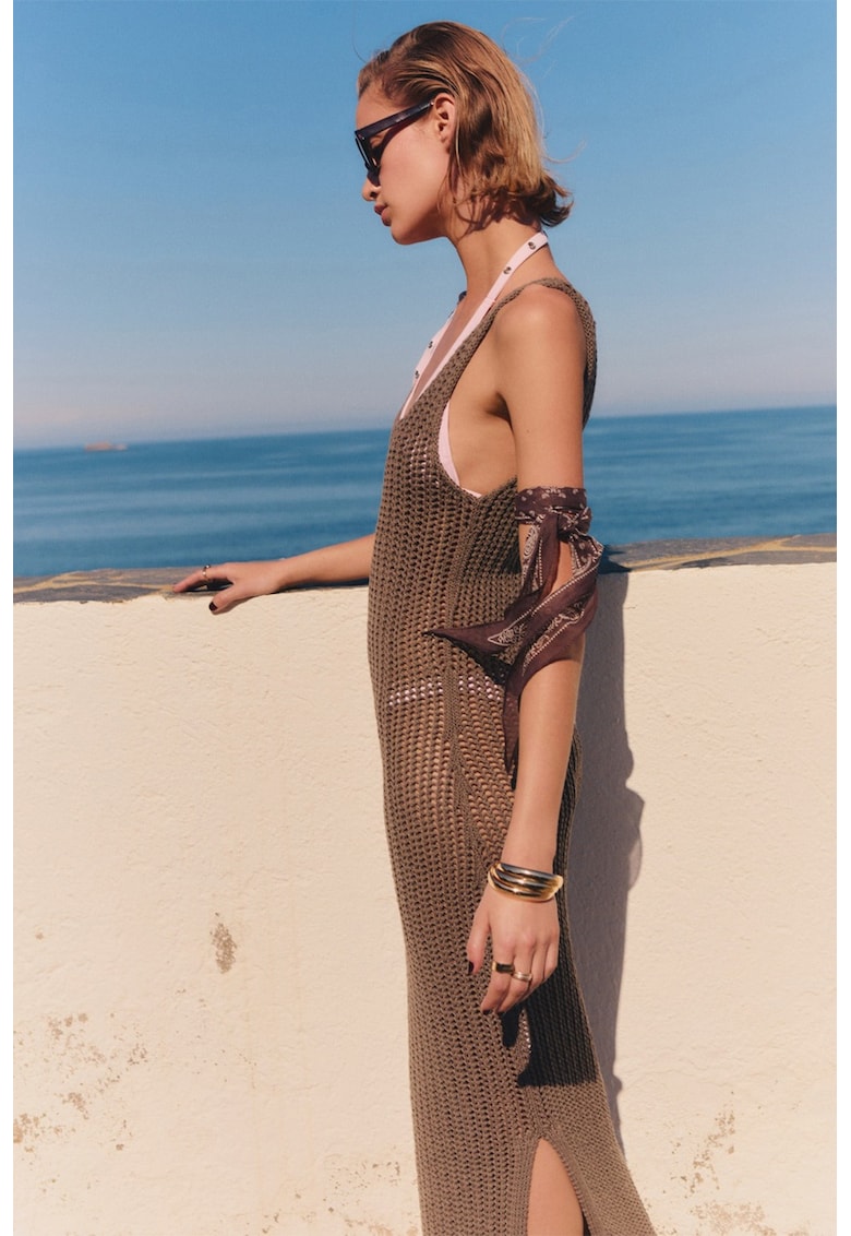 Rochie maxi maro de plajă din poliester cu aspect tricotat – Reducere 43.48 %