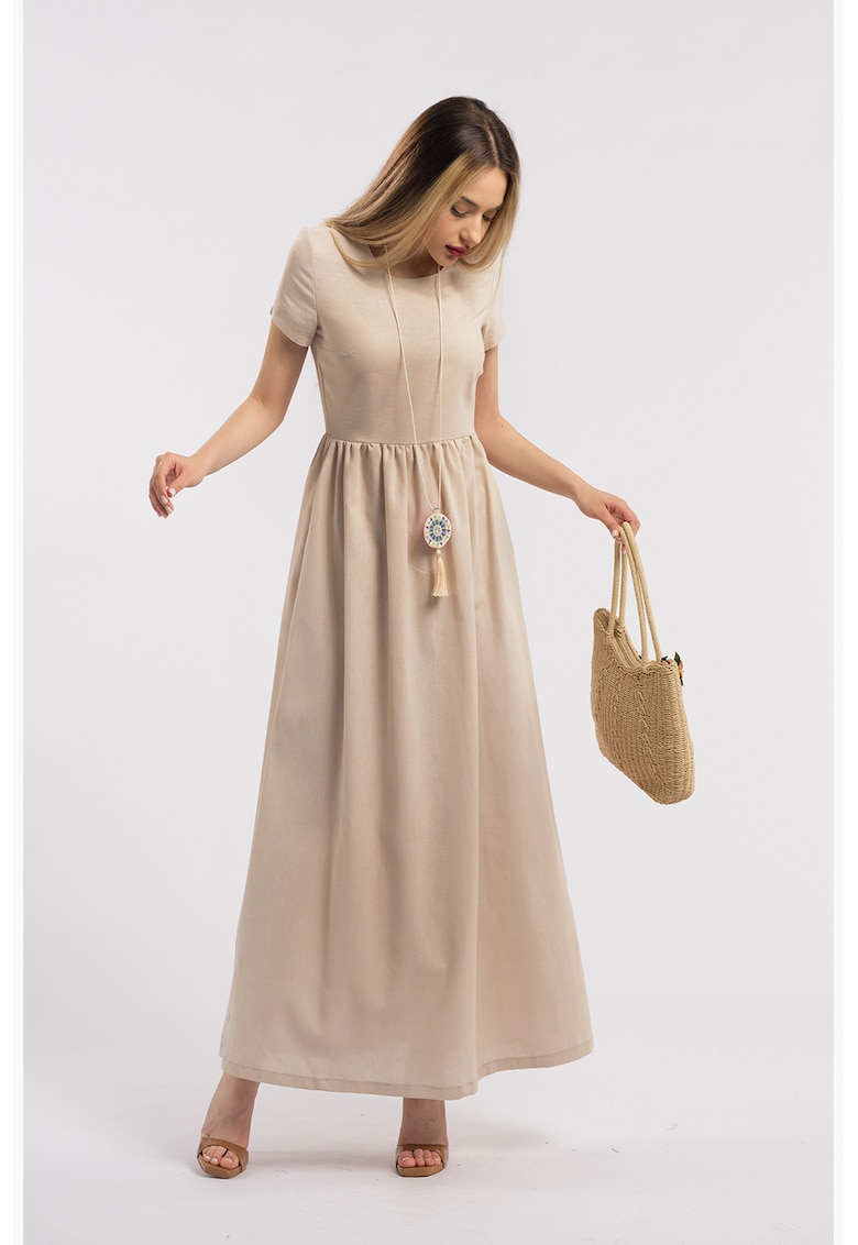 Poartă cu încredere această rochie maxi din in bej. Perfectă pentru zilele de vară, oferind confort și stil unificat.