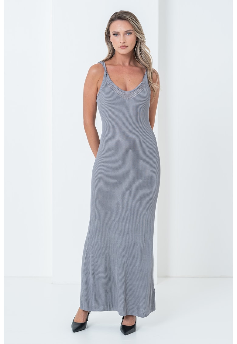 Rochie maxi gri închis din viscoză fără mâneci – Reducere 43.93 %
