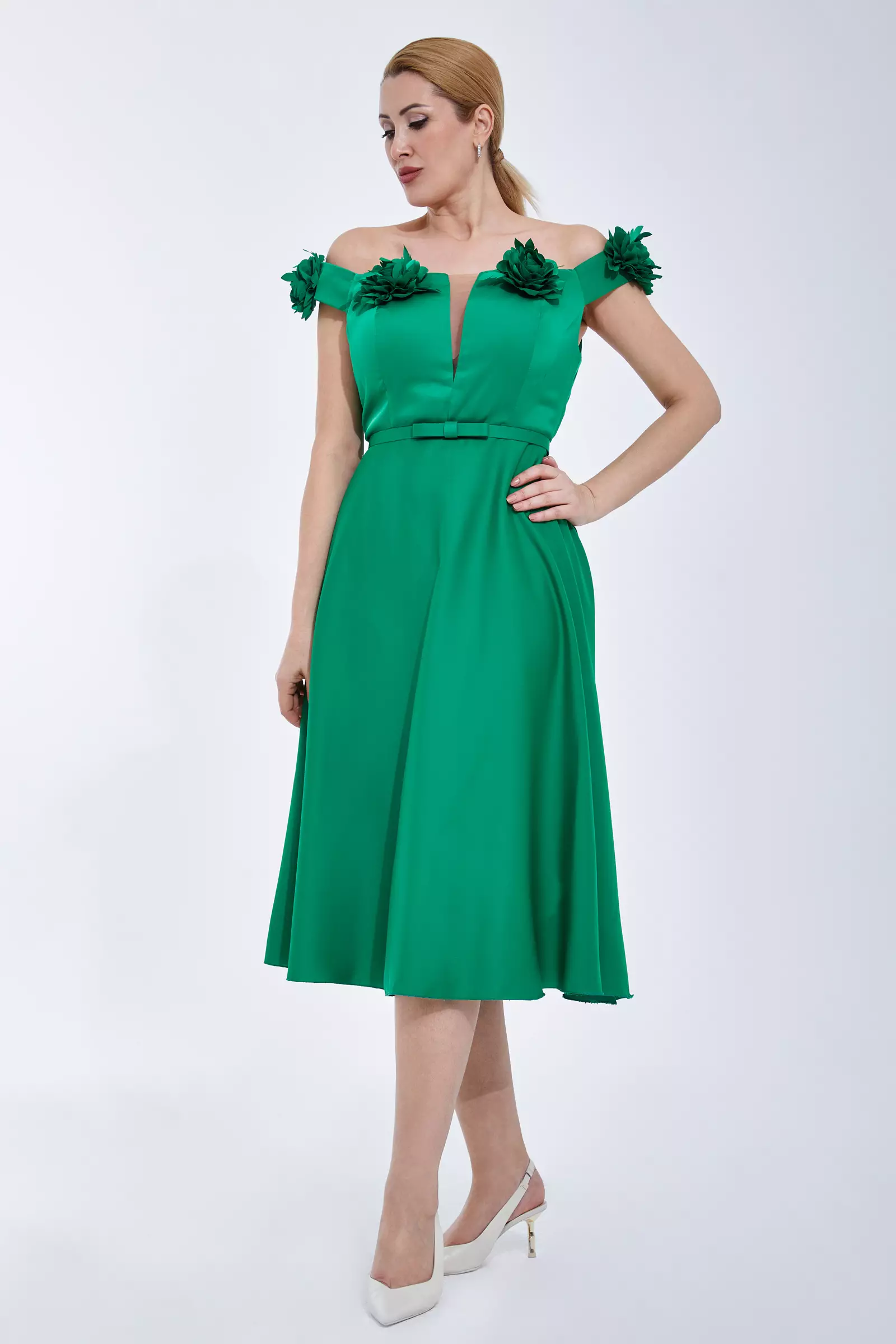Rochie midi Clara fara maneci din satin, culoarea verde