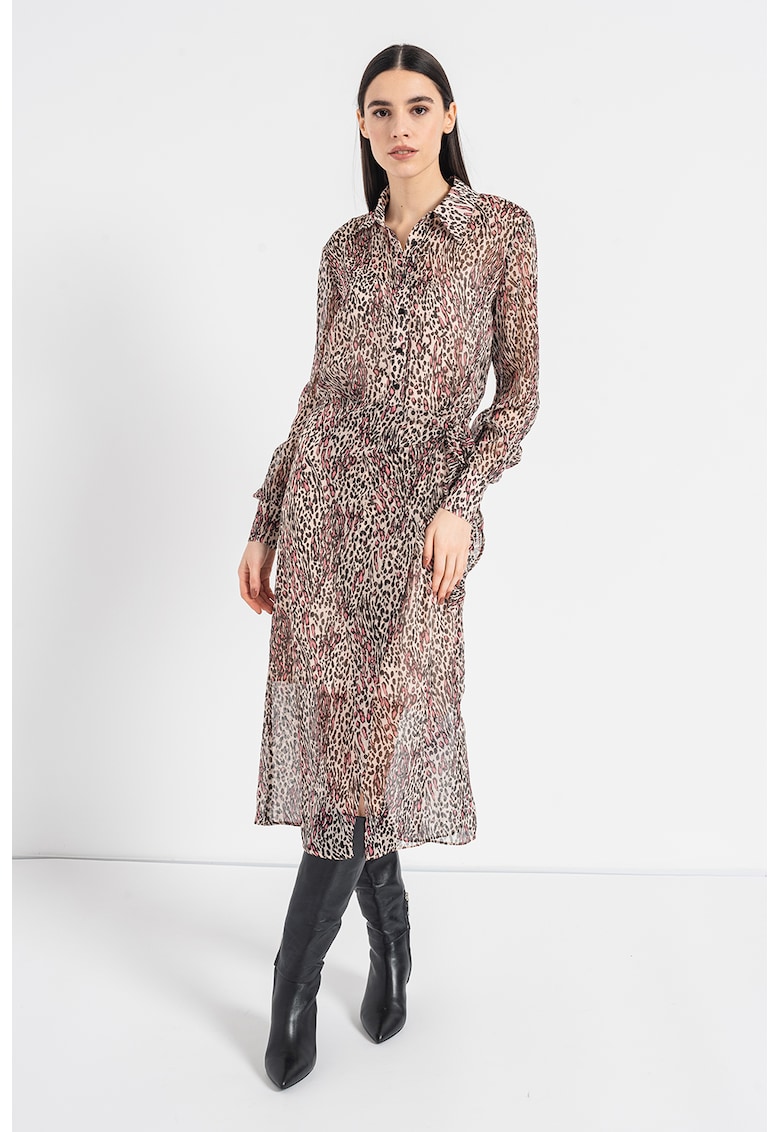 Rochie midi cu animal print – Negru/Roz pal