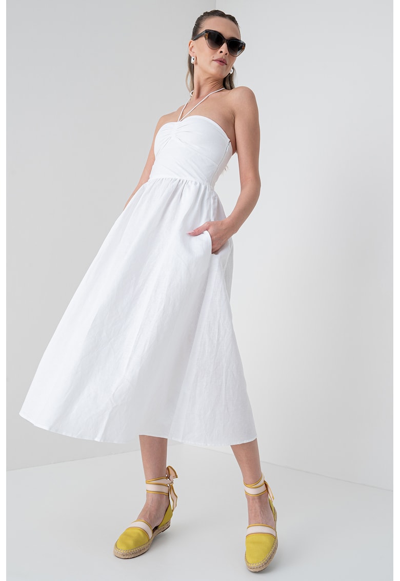 Rochie midi alb murdar din in cu decolteu cache coeur – Reducere 47.62 %