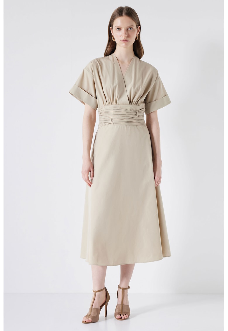 Rochie midi evazată bej deschis din bumbac – Reducere 60.66 %