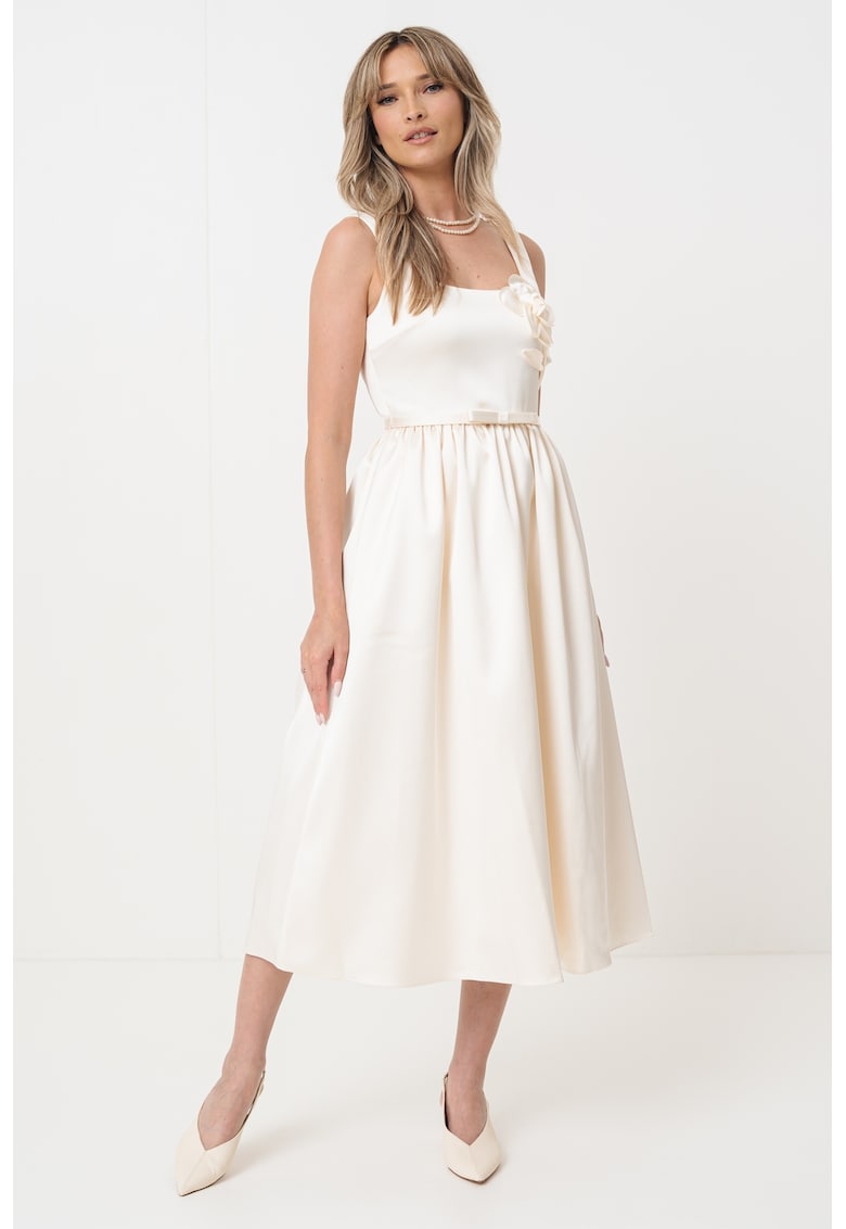Rochie bej midi evazată din poliester cu buzunare laterale – Reducere 37.25 %