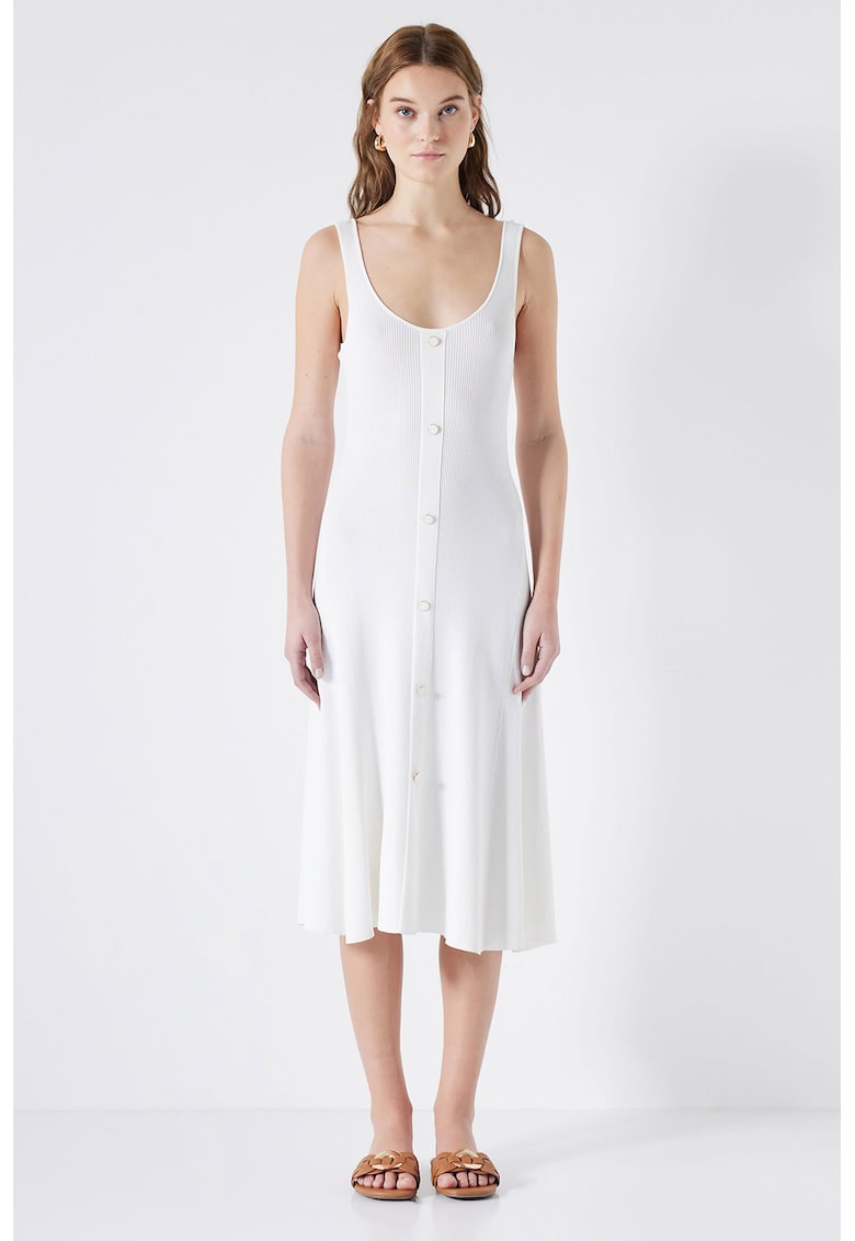 Rochie casual albă midi fără mâneci din material sintetic – Reducere 67.98 %