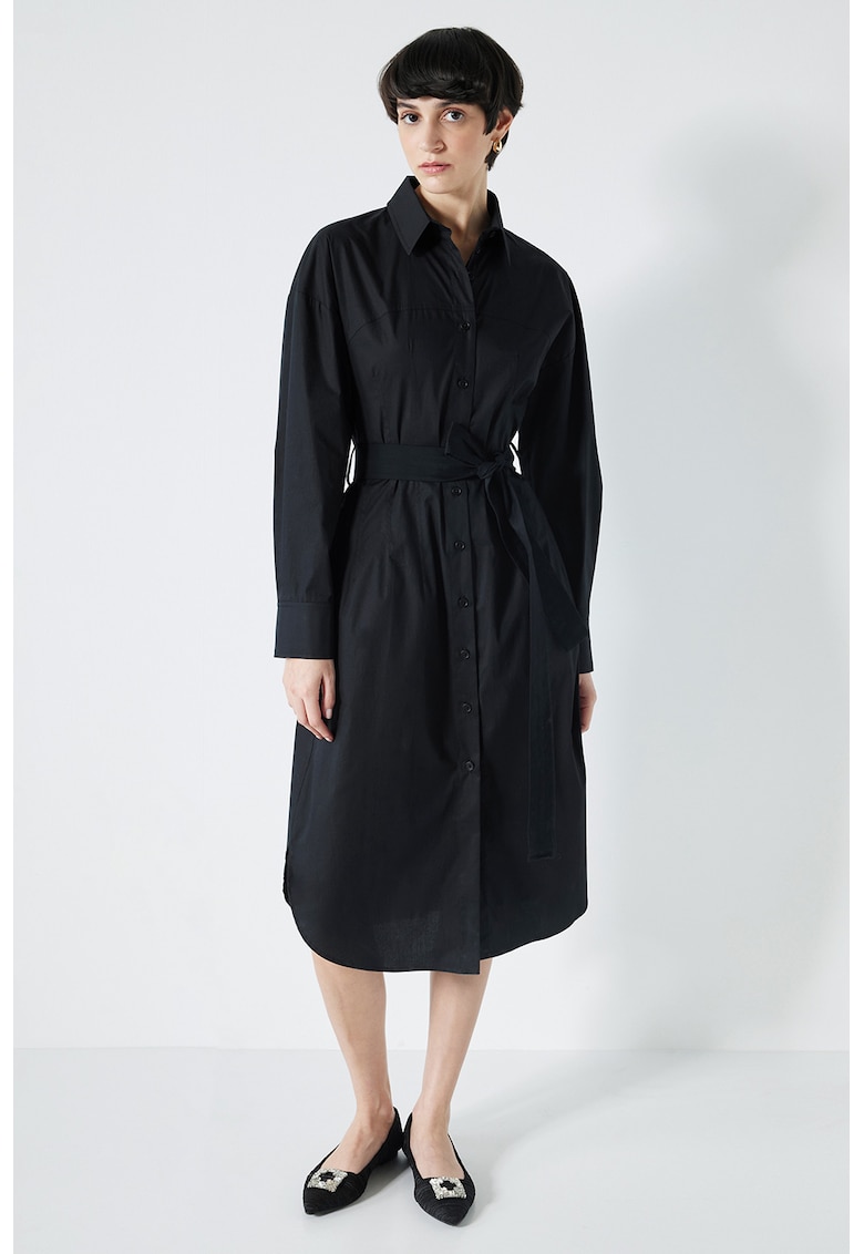Rochie casual neagră din bumbac cu cordon în talie – Reducere 69.99 %