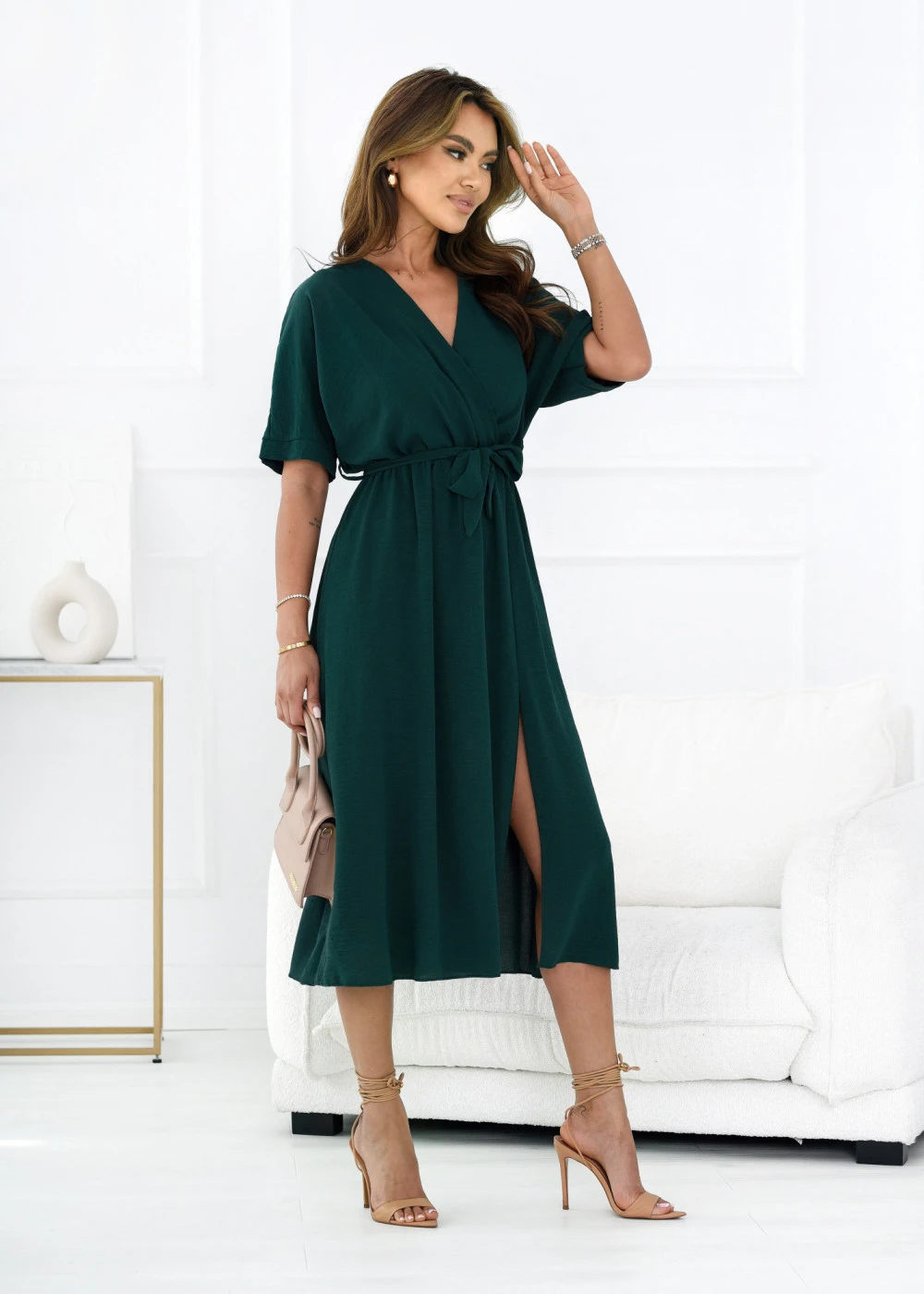 Rochia care atrage toate privirile: verde smarald, cu decolteu petrecut. Un plus de feminitate perfect pentru zilele călduroase!