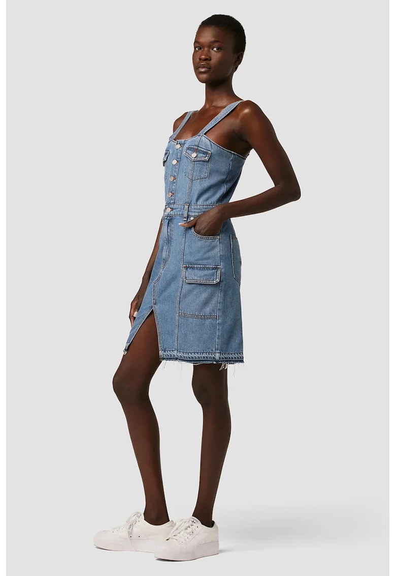 Rochie mini albastră din lyocell cu bretele ajustabile și nasturi – Reducere 44.12 %