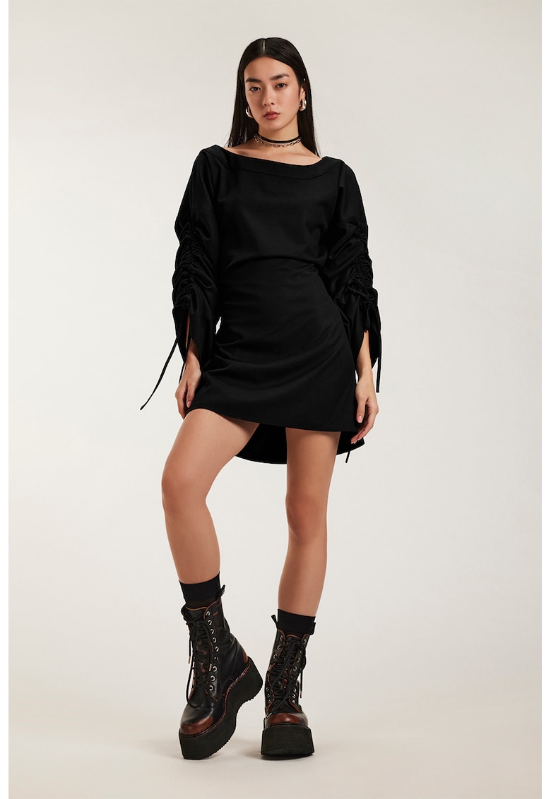 Rochie casual neagră din sintetic cu mâneci volane – Reducere 57.86 %