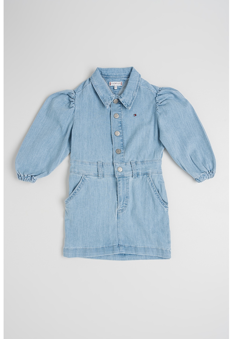 Rochie casual albastră din bumbac cu mâneci bufante – Reducere 52.97 %