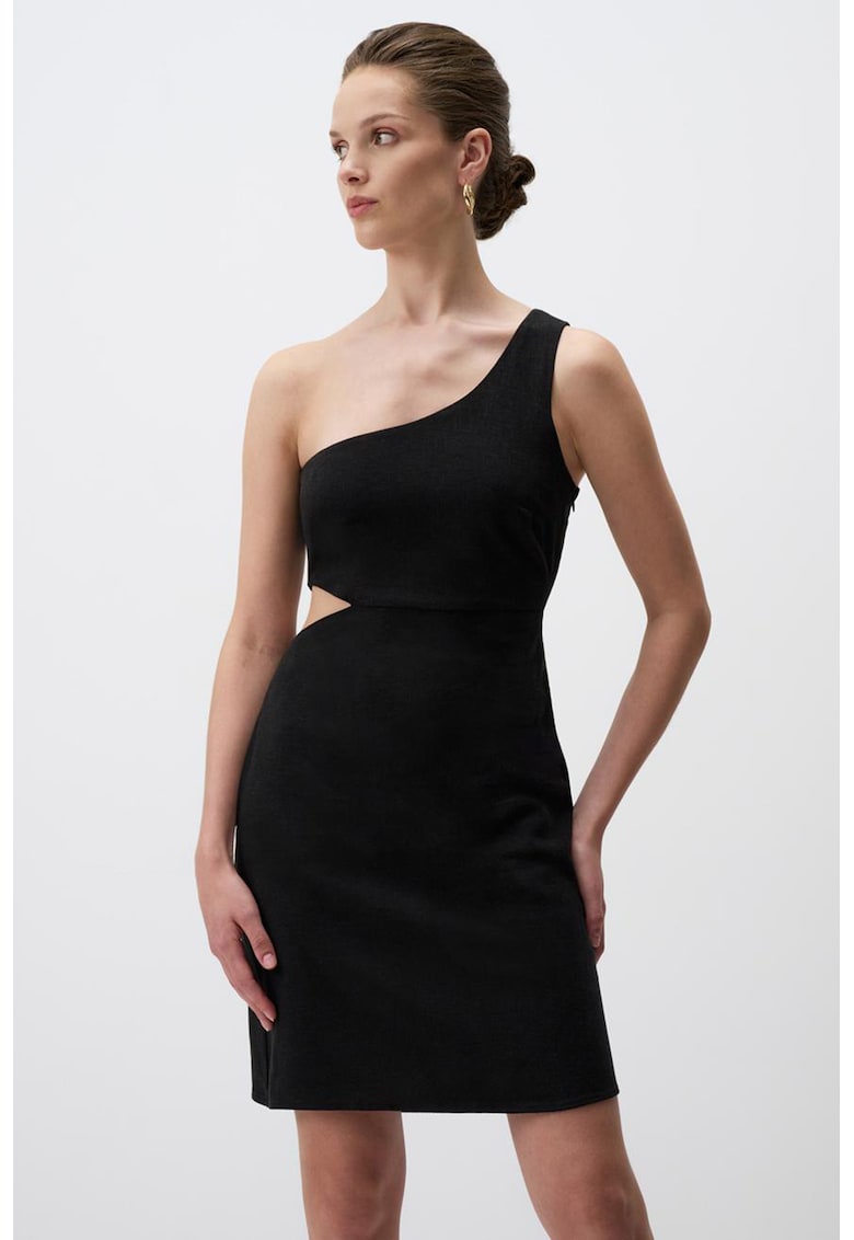 Rochie mini din amestec de in cu decupaj – Negru