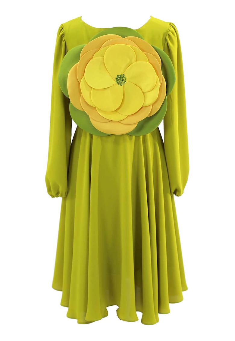 Rochie mini evazata cu aplicatie florala – Verde lime