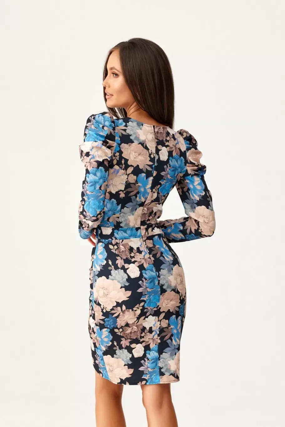 Rochie elegantă cu imprimeu floral din poliester cu decolteu în V și umeri bufanti – Reducere 28.69 %