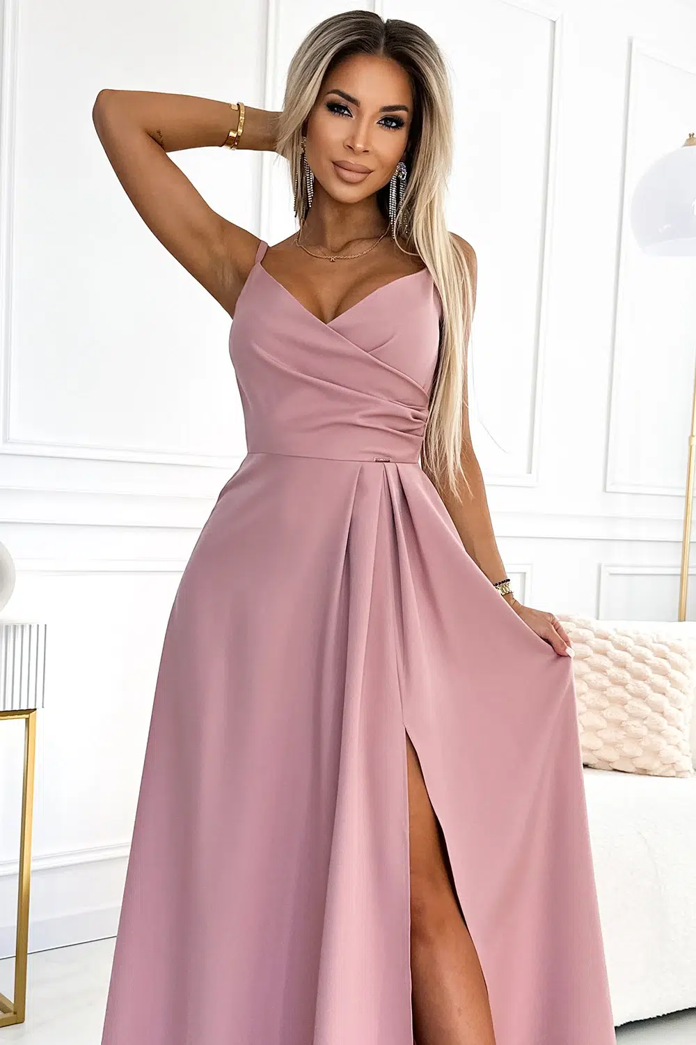 Încântătoare și sofisticată, rochia Nidia Pink este alegerea ideală pentru o seară de neuitat. Cu un croi lung elegant și bretele delicate, această piesă vestimentară se remarcă prin decolteul petrecut în V ce adaugă un touch de senzualitate.