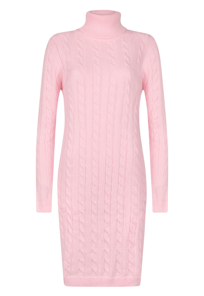 Rochie casual roz din sintetic cu model torsade și guler înalt – Reducere 72.7 %