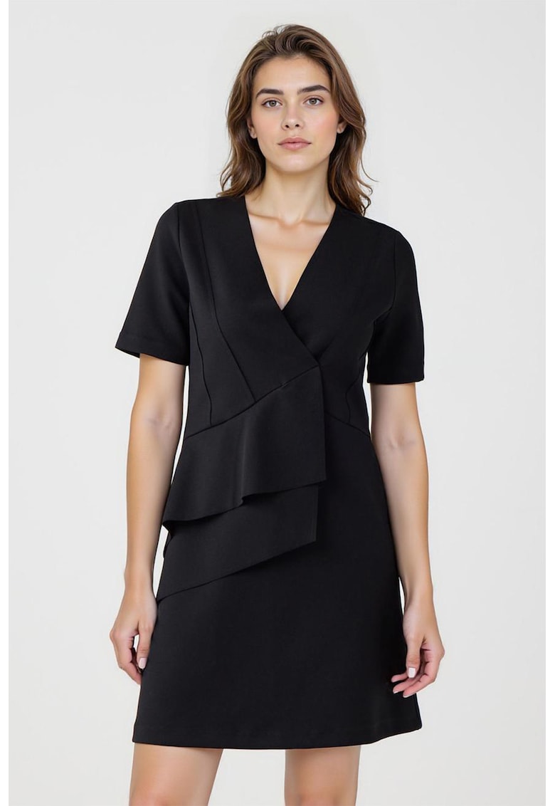 Rochie scurta cu volane si decolteu in V – Negru