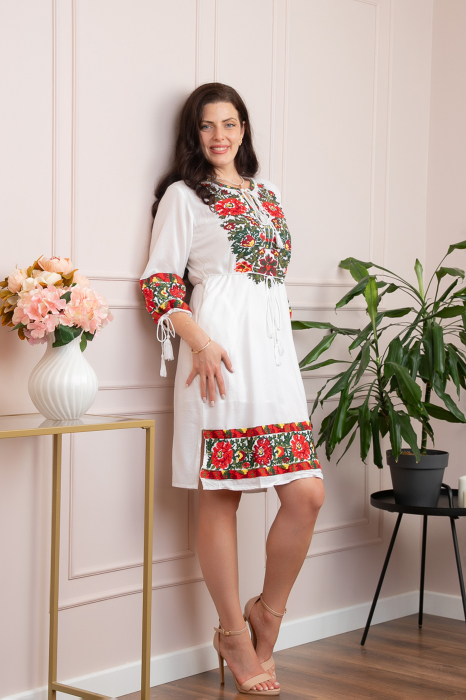 Rochie tradițională albă din bumbac cu broderie florală – Reducere 22.56 %
