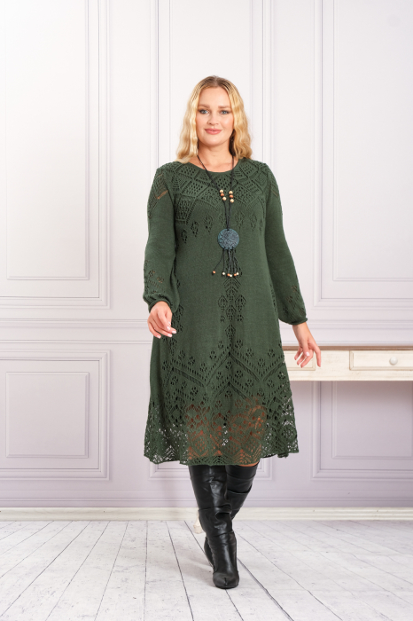 Rochie boho verde din tricot cu detaliu perforat – Reducere 33.33 %
