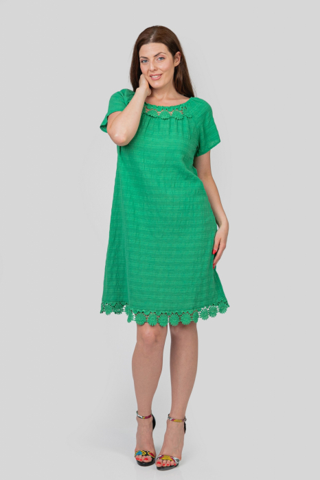 Rochie verde din bumbac cu aplicații florale și croi în A – Reducere 24.46 %