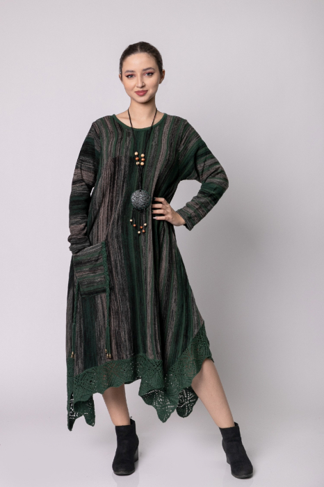 Nou în colecție: rochie boho chic verde cu buzunare. Perfectă pentru zilele de vară. Stil și confort garantat.