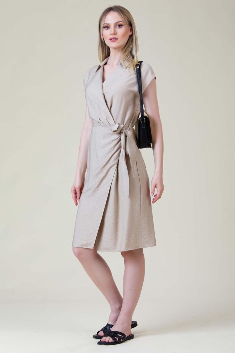 Rochie elegantă din viscoză cu guler și cordon lateral – Reducere 40 %